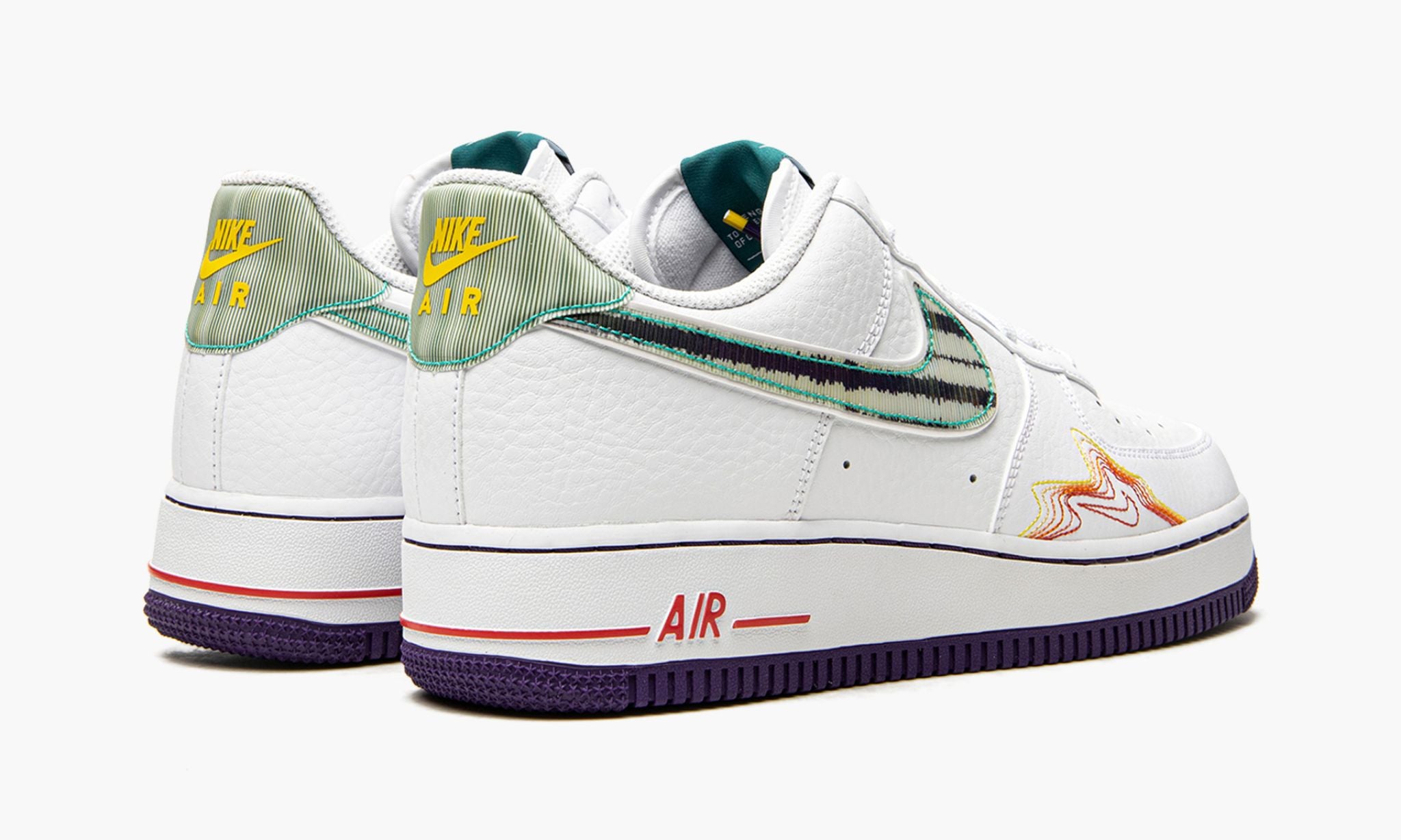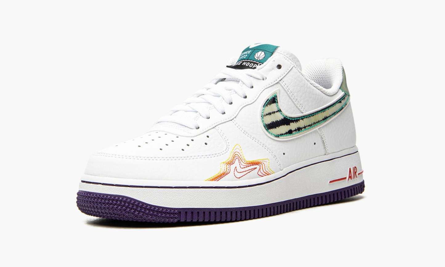 The De’Aaron Fox x Low “Pregame Pack is part of a special collection of shoes from and Brand that celebrates the pregame rituals of basketball’s brightest stars. Alongside Ben Simmons, Luka Doncic, and Brittany Griner, all of whom received exclusive colorways dedicated to their unique pregame routines, Fox, a sweet-shooting left-handed point guard, is undoubtedly one of the most enigmatic hoopers in the world. The design inspired by his pregame ritual of listening to music features a white leather base with colorful sound wave detailing on both the forefoot, embroidered Swoosh on the mid-panel, heel, and purple insole. Retro-inspired Hoops branding appears on the turquoise tongue tab. A red “Air logo on the heel contrasts the white rubber midsole. The De’Aaron Fox x Low “Pregame Pack was released on May 14, 2020.